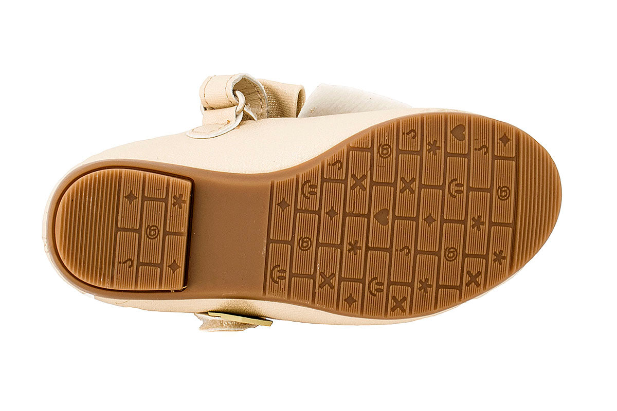 Balerina para niña, fabricada con los materiales de la mejor calidad, interior de cerdo que evita la sudoración y mal olor del pie, cuenta con plantilla con arco soporte, que brinda comodidad y una sana formación al arco de tu pequeña, exterior en textil beige nacarado, látigo con moño y velcro para su sencilla colocación, suela antiderrapante, ligero, moderno e ideal para cualquier tipo de ceremonia como presentaciones al templo, confirmaciones y  primeras comuniones.