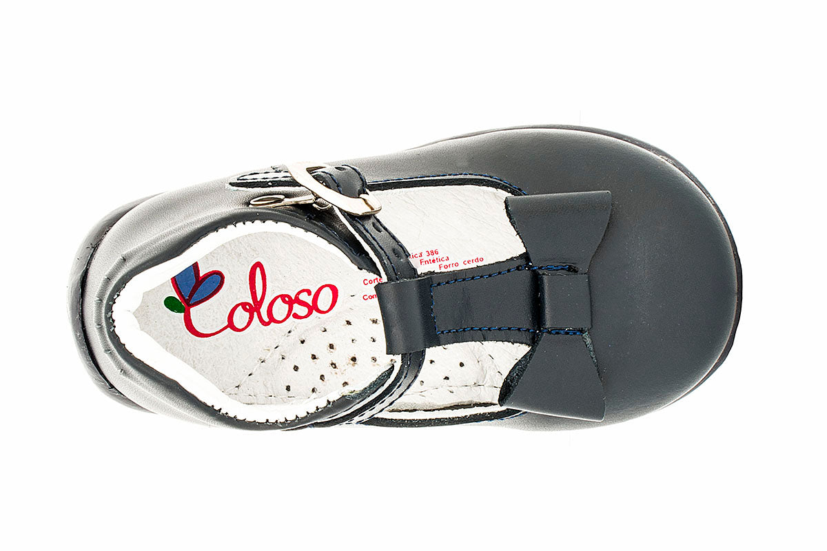 Botita para niña fabricada 100% en piel, interior de cerdo que evita la sudoración y mal olor del pie, acabado exterior en piel azul marino, cuenta con plantilla con arco soporte para el sano desarrollo del arco de tu pequeña y removible única en el mercado que te indica cuando hacer el cambio de talla, tiene cojinete en el talón que la hace muy cómodo, traba T, ideal para pies regordetes ya que brindan amplitud y comodidad, tiene látigo con hebilla para su colocación, bellos detalles de grabado, y suela antiderrapante.